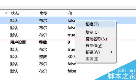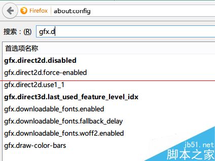 5、看到第一条,gfx.direct2d.disabled,它的值默认为disable,右键点击它,然后点击"切换",值变为true即为成功了
