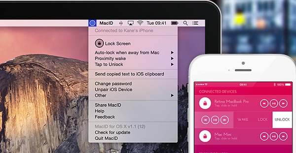 设置过程太简单了,考虑到曾未用过这类工具朋友的感受,小编还是仔细介绍一下,首先你要确保 Mac 升级到了 Yosemite,安装了 MacID 客户端并开启了蓝牙,iOS 设备升级到了 iOS 8,安装了 MacID for iOS 这款 App下载并开启蓝牙模块。