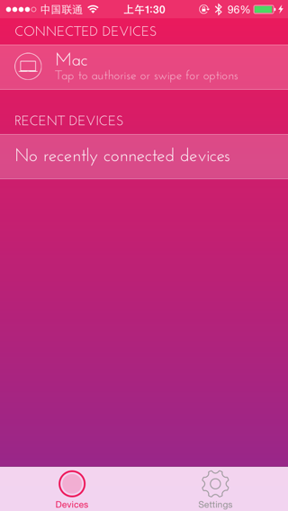 4、你不需要在 iOS 一侧做什么,他们会自动链接,然后你在 Mac 上就能看到状态是「Connected to device」了。而在 iOS App 上也能看到你的 Mac 赫然在册: