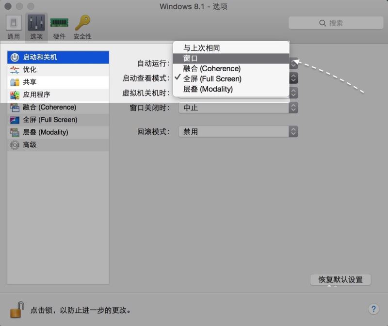 更改虚拟机启动的窗口模式