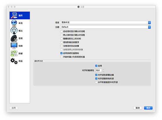 通用中可以设置OBS的语言,点击串流会看到如下界面: