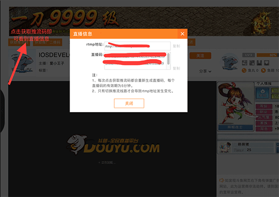 3、这个时候点击获取推流码,即可看到rtmp地址和直播码,将其填入OBS中串流的设置中。