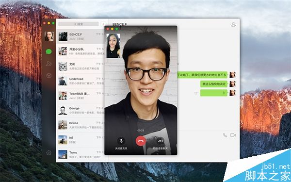 最新版本可以与微信好友进行语音通话或视频通话,非常的方便。如下图所示,以后便可以在 Mac 上愉快地与微信好友嗨聊了。