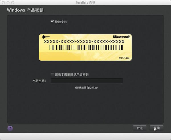 3、在此步骤中,我们可以选择“快速安装”,在虚拟机安装Windows 8 时会提示您输入安装密钥,(在产品密钥文本框中键入已购买的密钥,或取消选中“该版本需要提供产品密钥”,在Windows 8安装完成后激活)。