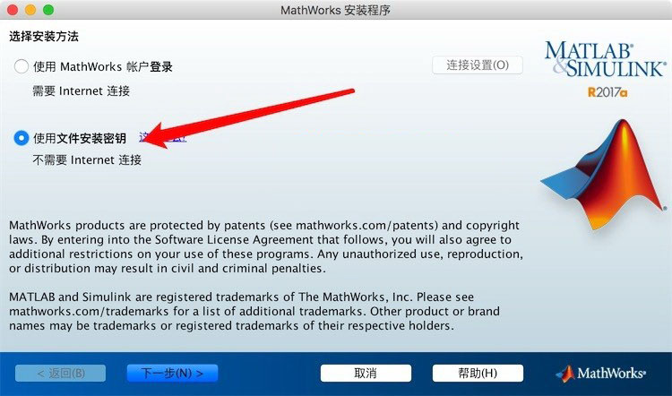 9、使用提供的“license_standalone.lic”文件(来自R2016b版本)或复制许可证文件到/Applications/ matlab_r2017a .app /licenses/下。