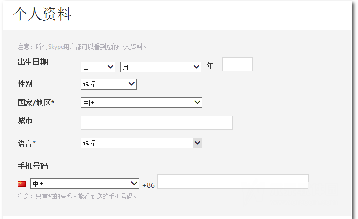 2.输入个人资料信息。个人信息出一定要天的很详细哦!这样方便好友在skype上找您。(如下图)