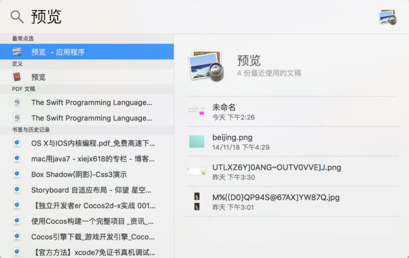 1、按“command+空格”启动Spotlight输入“预览”后按确定启动“预览”工具。也可以双击一个图片文件快速启动“预览”。