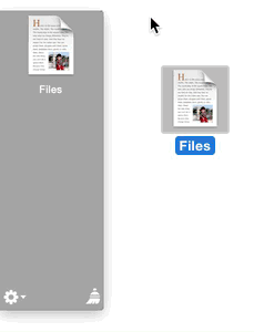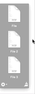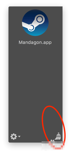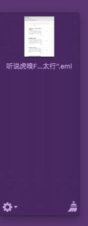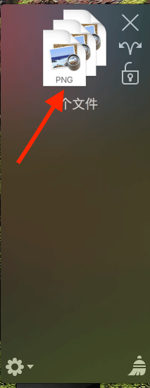 3、如果菜单栏没有出现这个YoinK图标,那么要先选中某个文件拖动,然后它就会自动的出现了。选中文件后要拖动才可以,并且把文件拖入灰色的区域才可以看到左下角的齿轮设置图标。点击右下角的扫把可以把这个内容清除掉。只是清除YoinK里面的原来的文件在哪里不会清除。