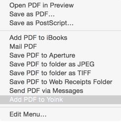之后,在保存 PDF 时选择此项,你存下来的 PDF 文件就会直接放到 Yoink 中,方便你作下一步操作。