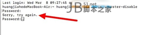 如果出现 Sorry, try again. 如下图,说明你输入的密码错误了,意思是让你重新再输一次试试。