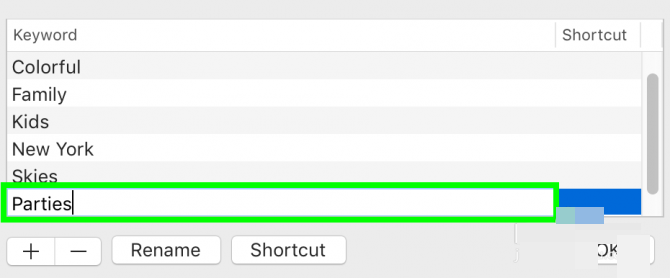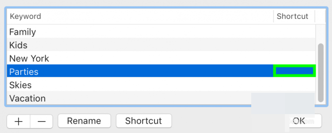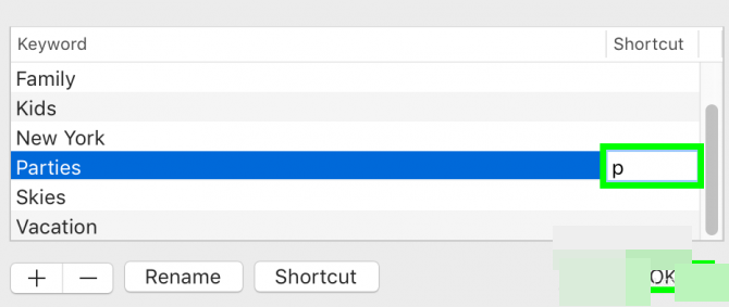 4.输入 一个字母。 此快捷键可与Option键(Option + P)配合使用,以快速标记照片。完成后点击确定。