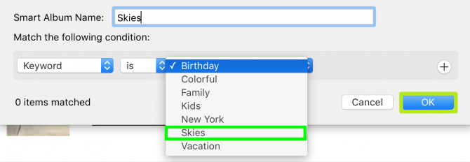 7.现在,您使用此关键字标记的每张照片都会出现在此智能相册中。