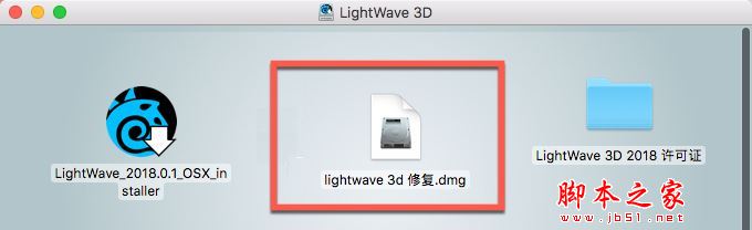 1、打开LightWave 3D 2018 软件包中的【lightwave 3d 修复.dmg】。