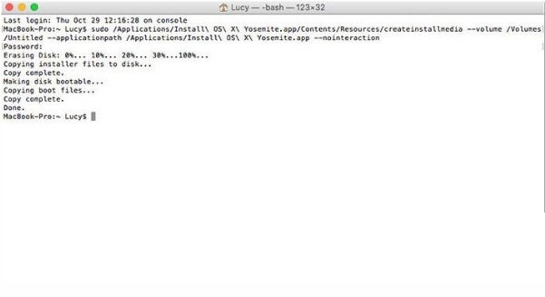 7、之后,按回车,随即会出现进度条,速度取决于你的usb读写速度,(这里借鉴别人的图),出现Done时代表写入完成