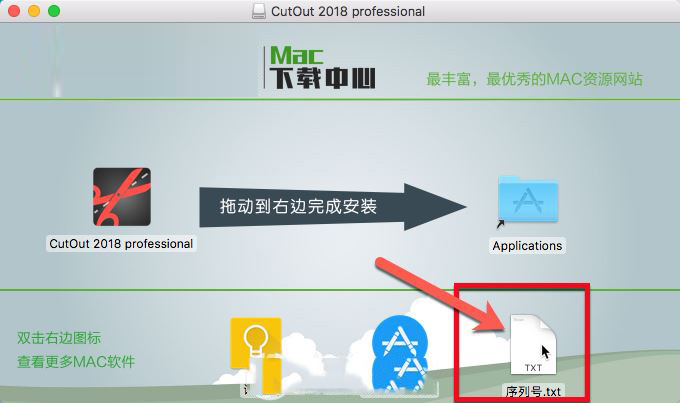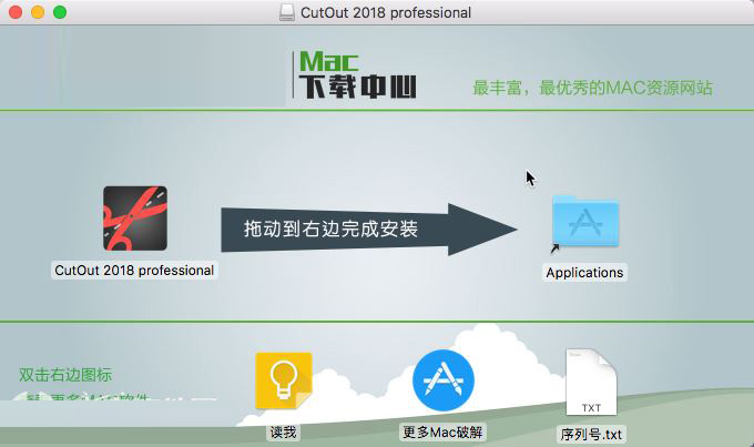 下载软件完成后,打开软件包,拖动软件【CutOut 2018 professional】到应用程序进行安装