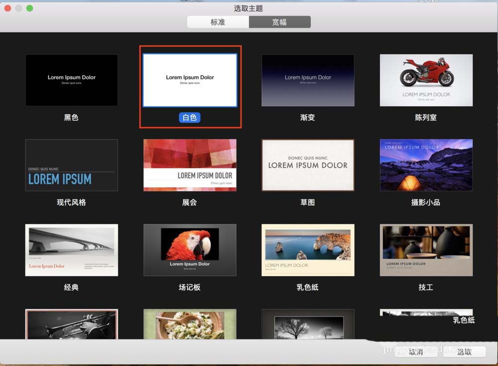 1、打开keynote软件,创建一张空白的幻灯片,然后点击工具栏上的“形状”