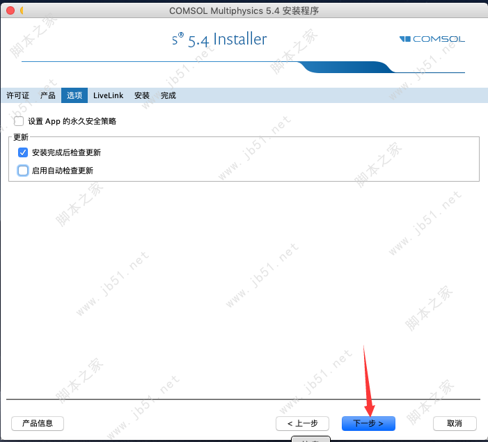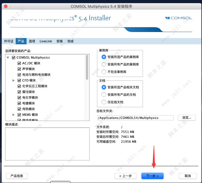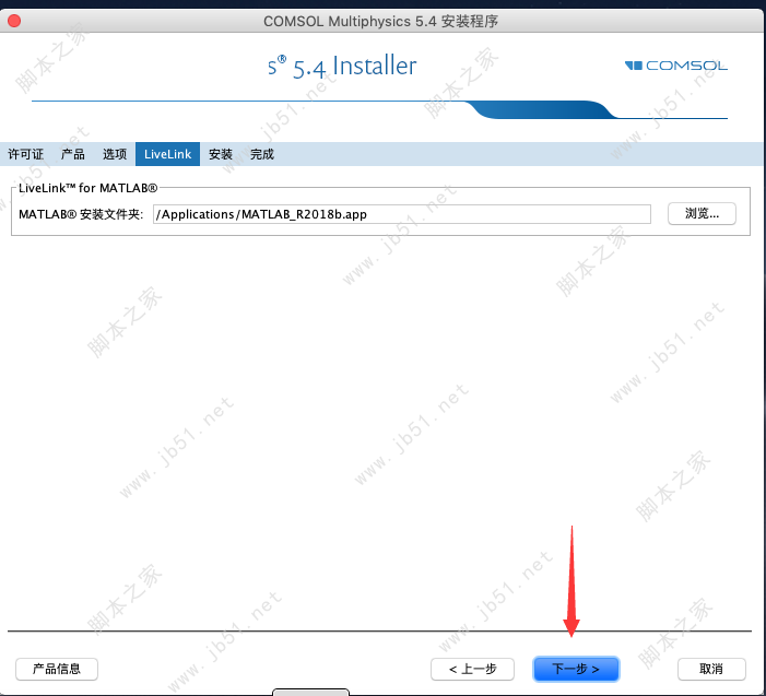 1、本站下载压缩包,解压后加载镜像COMSOL.5.4.0.225_DVD.iso,双击COMSOL Setup.app开始安装,默认简体中文,点下一步