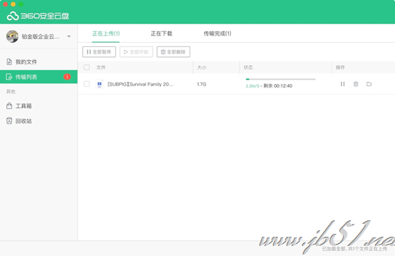 6. 传输列表,可以查看正在上传、正在下载、传输完成信息,并进行管理