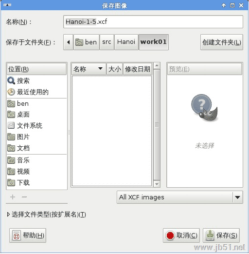 使用默认的XCF文件类型,然后按保存按钮(这一步也可以不做)