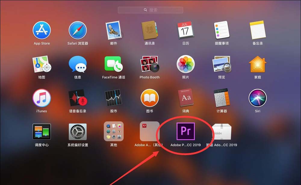2、打开Launchpad后,点击打开“Adobe Premiere Pro CC 2019”