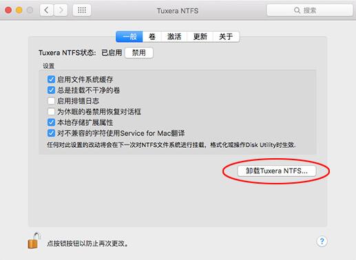 启动Tuxera ntfs for Mac,进入界面,点击【一般】选项,可以看到【卸载Tuxera NTFS】按钮,点击按钮,