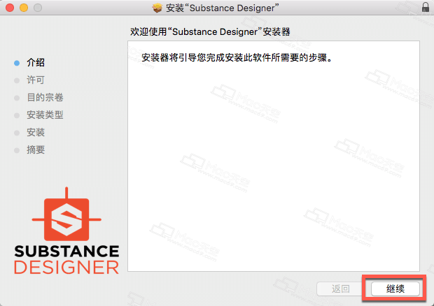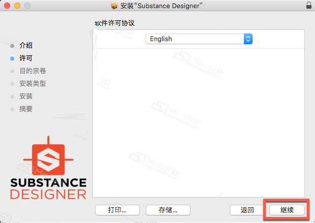 点击【继续】,继续安装三维贴图软件 Mac,如图: