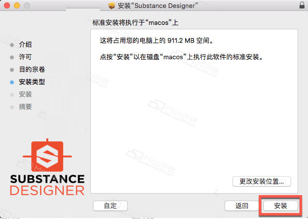安装substance designer2018破解版需要占用您911.2MB空间,点击【安装】,如图: