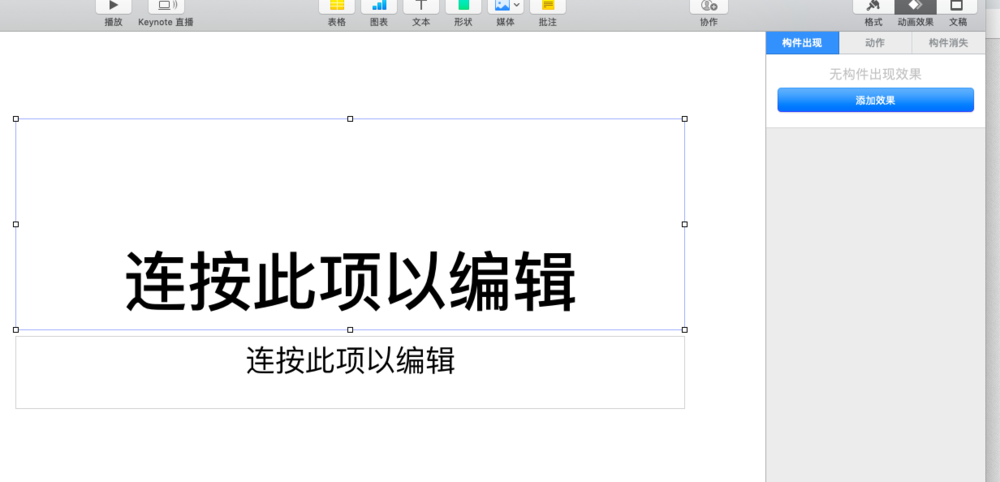keynote中的动画效果不仅仅针对于不同页面,还可以对某个页面的控件设置,比如文本框,可以给文本框添加飞入的效果,下面我们就来看看详细的教程。