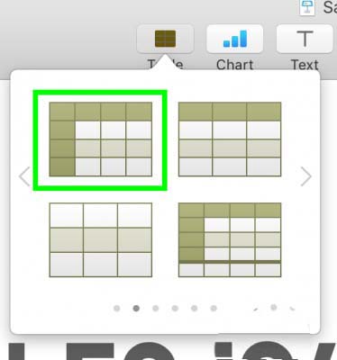2、选择一种表格。 向左和向右滑动以查看具有不同颜色和图案的各种选项。