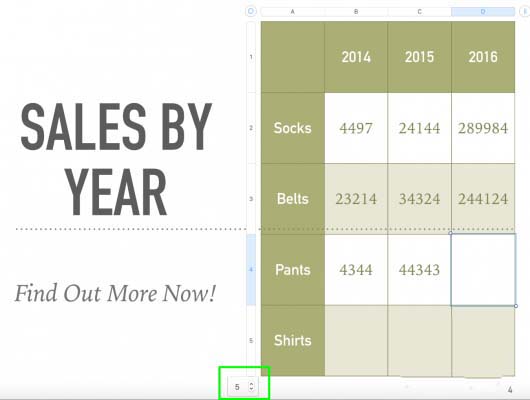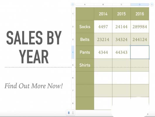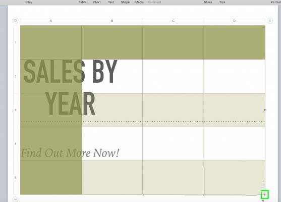3、单击并拖动表格右下角的方框以调整其大小。 Keynote倾向于将表格放在现有内容上。