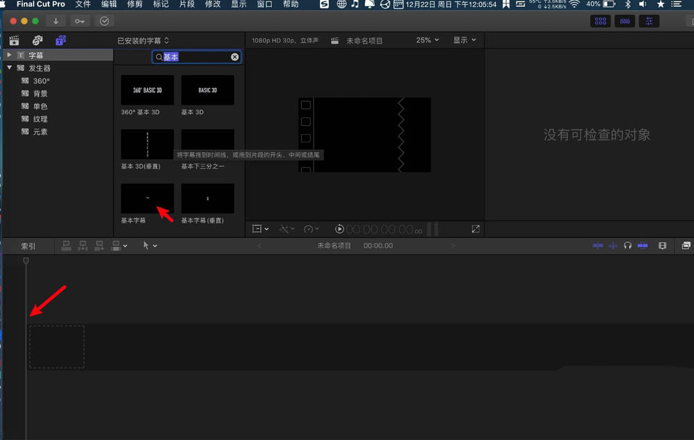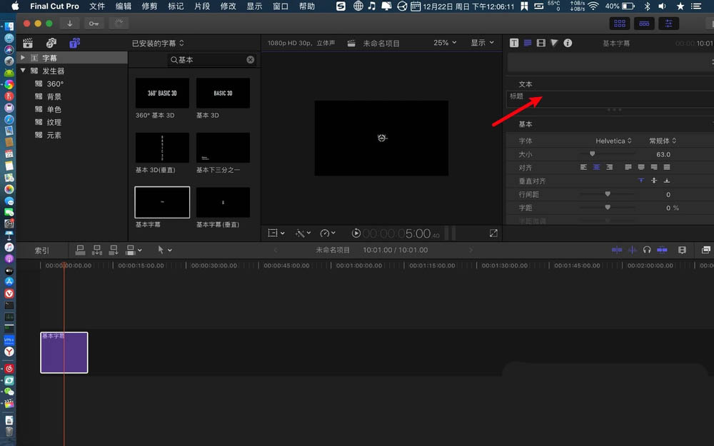 3、点击T,找字幕样式,字幕拖到时轴。文本底部,输入字幕。