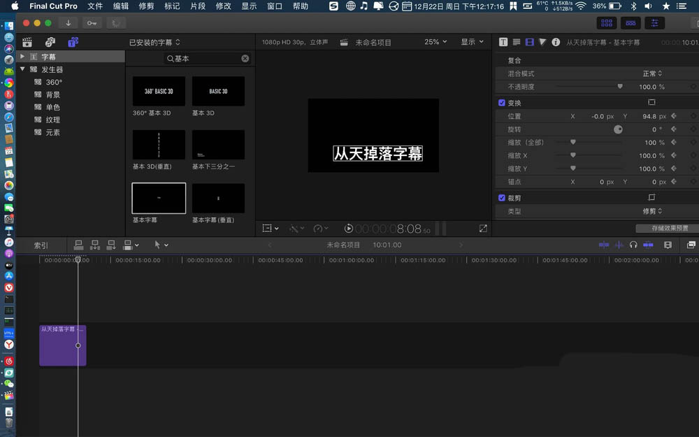 以上就是finalcutpro制作从天而降的字幕效果的教程,希望大家喜欢,请继续关注脚本之家。