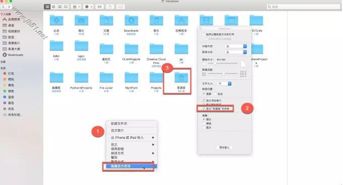 有些小伙伴表示用户名文件夹里面没有资源库,其实是资源库被隐藏了,请在访达中右击【查看显示选项】,然后勾选【显示“资源库”文件夹】即可显示文件夹,如图: