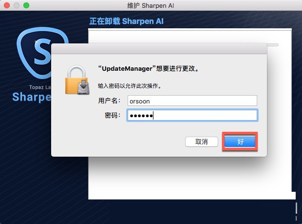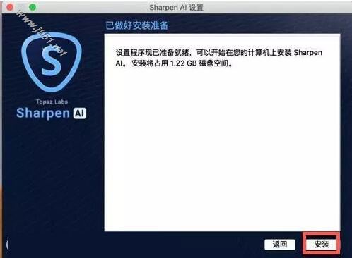 点击【安装】,继续安装Topaz Sharpen AI Mac破解版,如图: