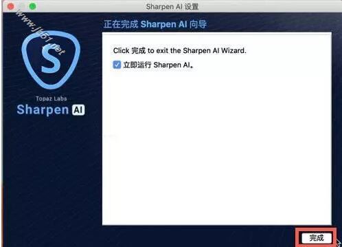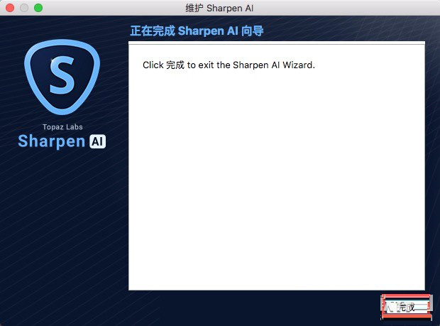 安装完成Topaz Sharpen AI for Mac点击【完成】,即可,如图: