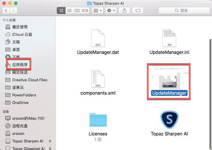 如果你想要卸载Topaz Sharpen AI mac版,那就在应用程序中找到并双击“UpdateManager”,如下图: