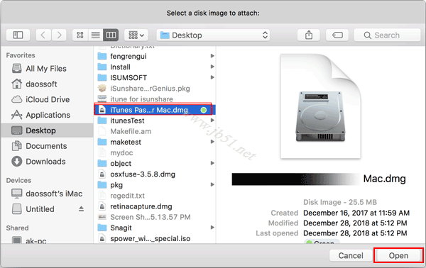 Step 2:然后选择要附加的磁盘映像,然后单击Open。然后,您可以打开、读取和写入*。自由dmg文件。