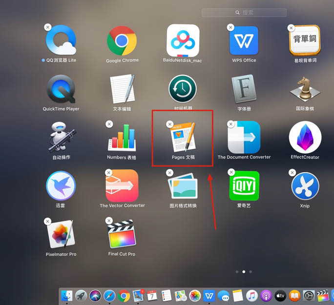 1、首先打开电脑的『启动台』,再打开『Pages文稿』,如图