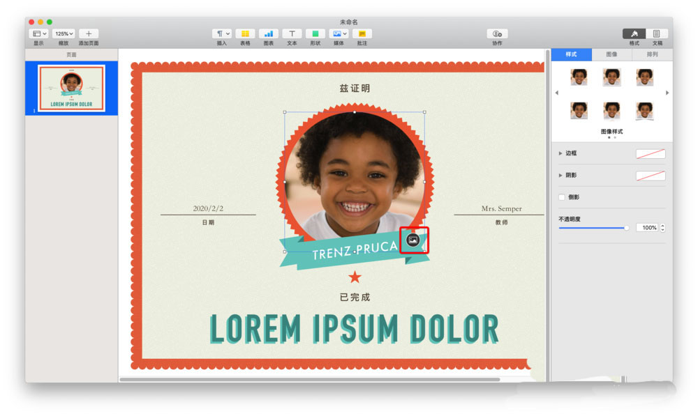5、这里我们以儿童证书为例,打开模板后我们可以选择要更换的图片,如图