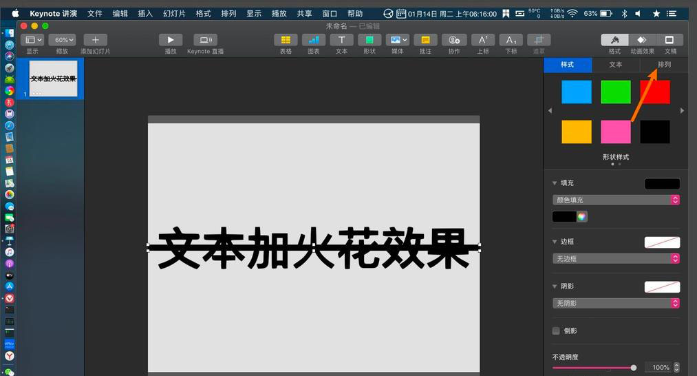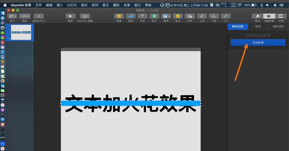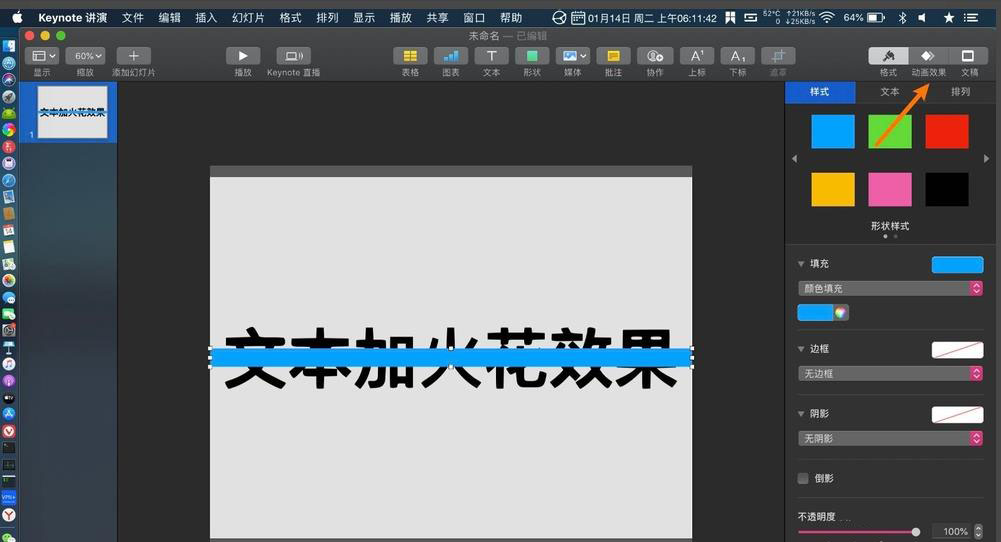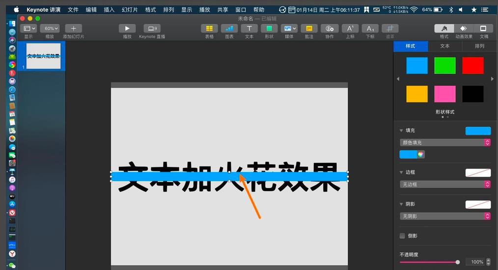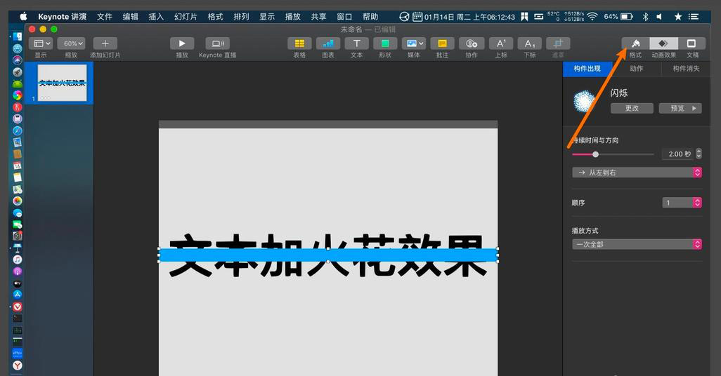 keynote讲演要给文本加火花效果,该怎么制作火花动画效果呢?下面我们就来看看详细的教程。