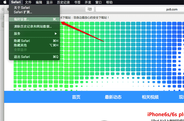 1.首先要打开 Safari,然后点击屏幕左上角的 Safari 菜单,并选择偏好设置。