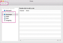 6、在“组织”选项卡上,单击“规则”,然后选择“编辑规则”。在“规则”框的左窗格中,单击要为其创建规则的帐户类型,如 Exchange、IMAP 或 POP。