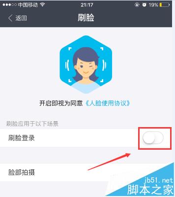 7、然后在刷脸登录那点击开启,以后就可以直接用刷脸登录了。