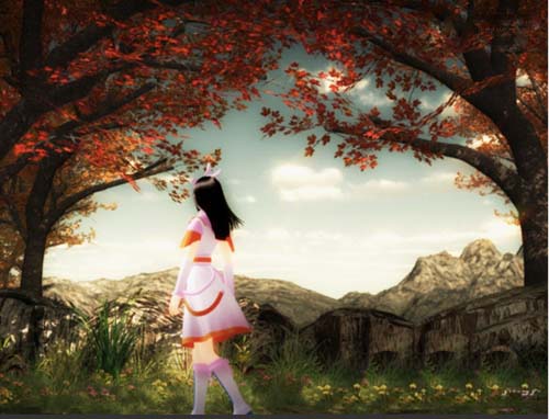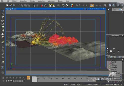 根据镜头动画需要,在镜头范围内完成场景元素的布置:地形,植被,大气,灯光。