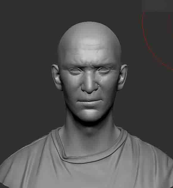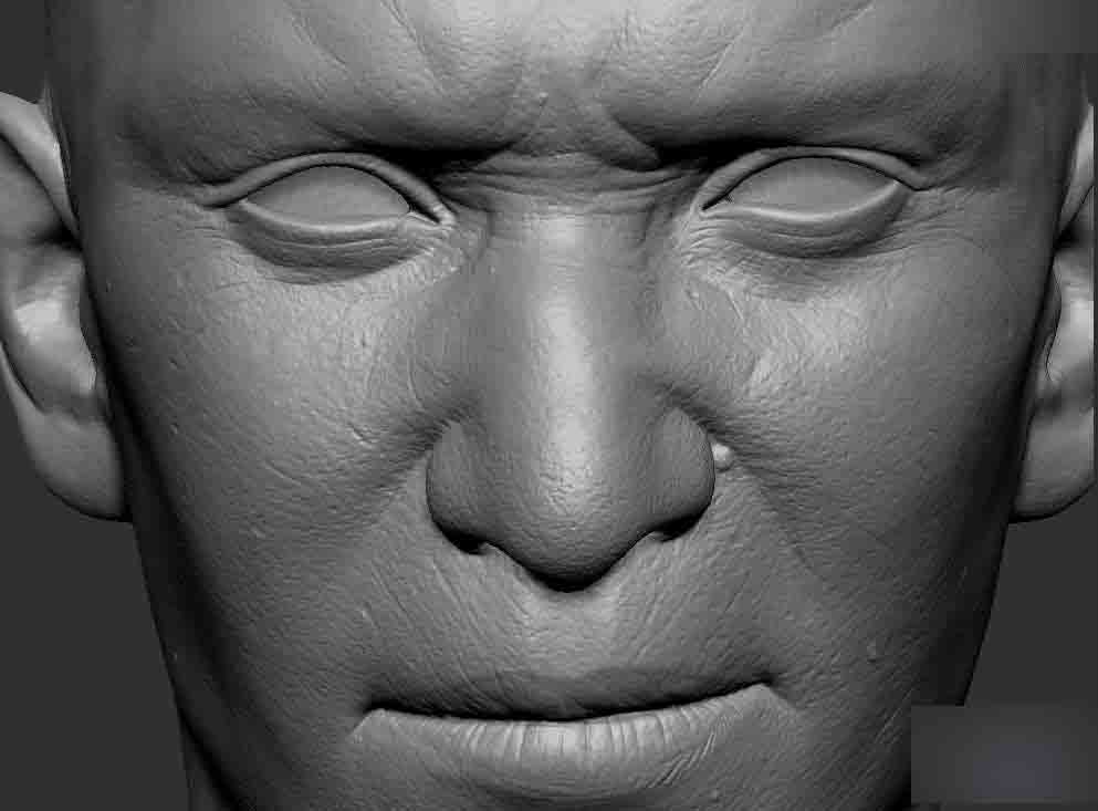 5、雕刻毛孔做到这里我觉得大型已经差不多了,没什么太大的错误,(美丑我不考虑),于是开始雕刻细节,好的毛孔可以塑造好的高光。