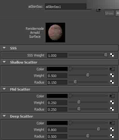7、阿诺德渲染我连上3S材质球试试。这里我没有画3张图,可能是VR用多了,我只画了1张颜色贴图,然后改了下Color Gain的颜色就贴上了。基本数值没太大变化,因为是真实比例的模型。