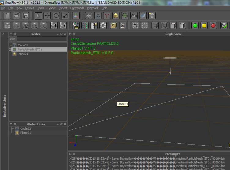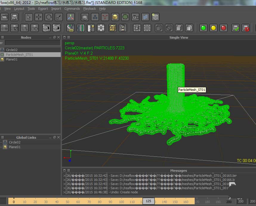 3、在Reaflow中做模拟时,首先要对流体进行网格操作,就是让流体以网格的形式模拟出来,如图所示,在你做好流体工具和地面之后,点击particle mesh。