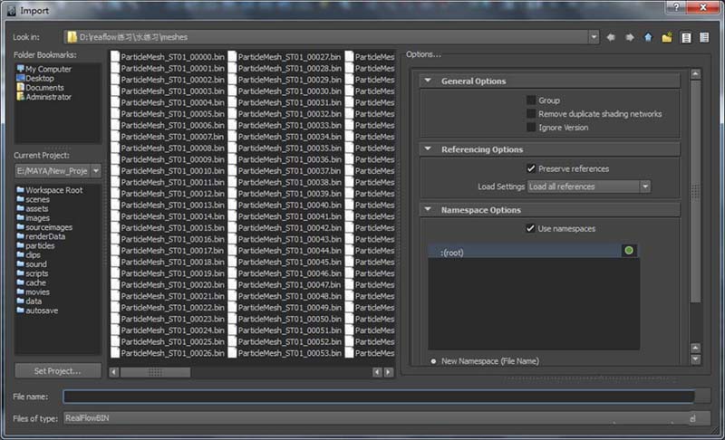 8、找到Reaflow流体模拟的mesh文件,如图所示,点击第一个,然后import。