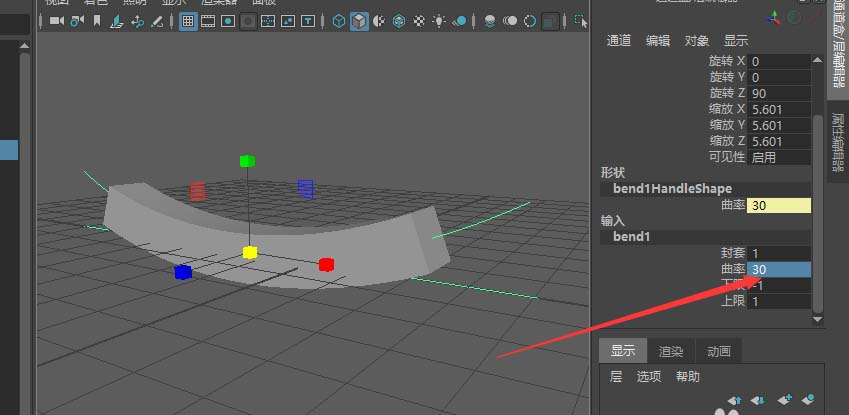 以上就是maya变形功能中弯曲命令的使用方法,希望大家喜欢,请继续关注脚本之家。