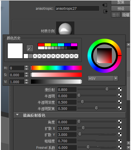 2、选择头部模型整体,点击右键不放,选择各项异性,选择白色作为基础色。